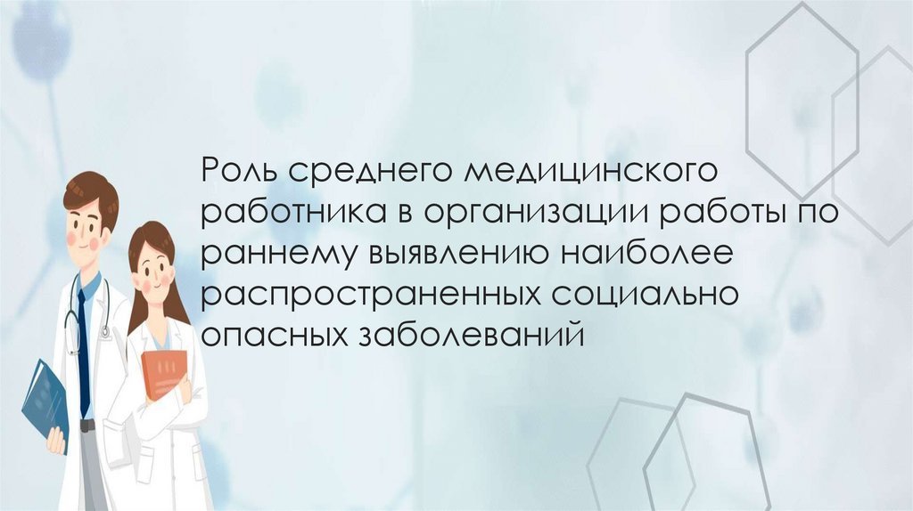 1. Роль среднего медицинского работника в организации работы по раннему выявлению наиболее распространенных социально опасных