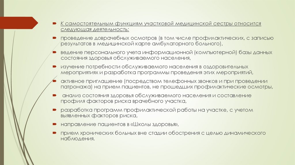 К самостоятельным функциям участковой медицинской сестры относитсяследующая деятельность: