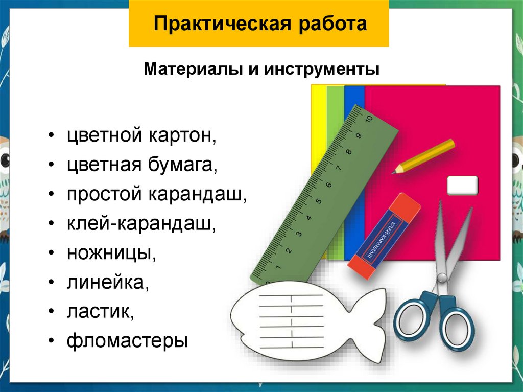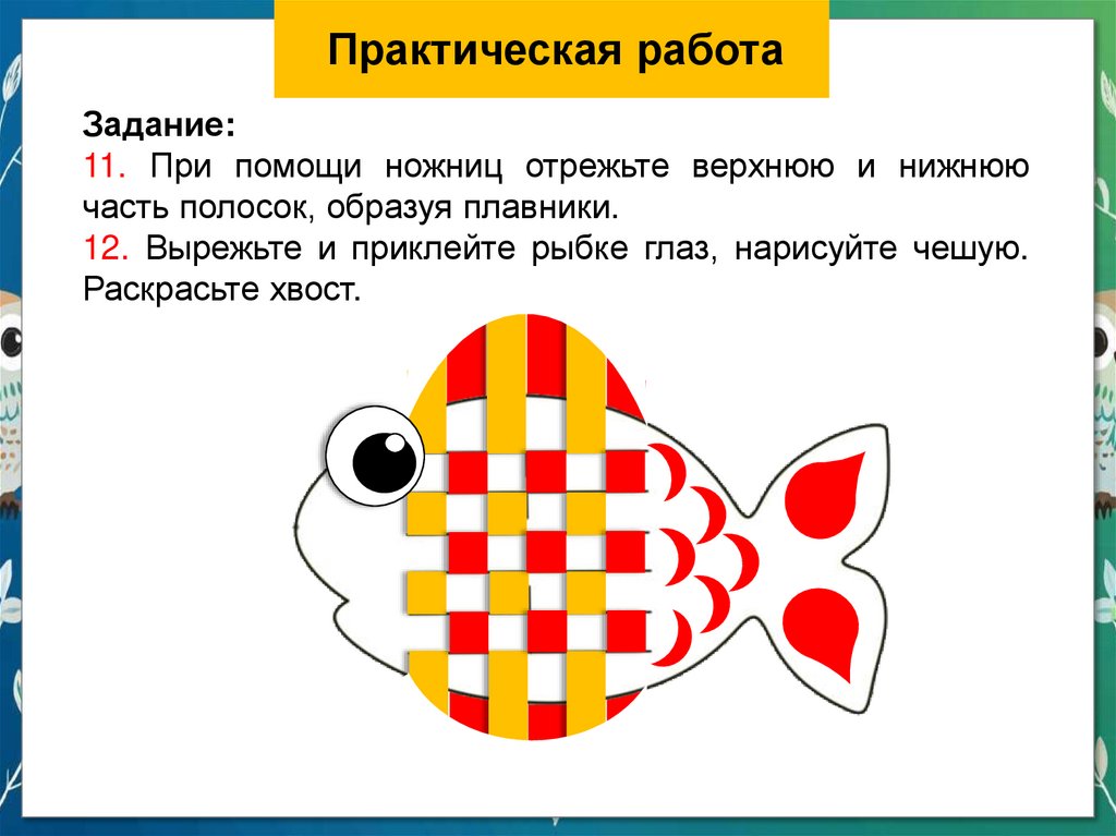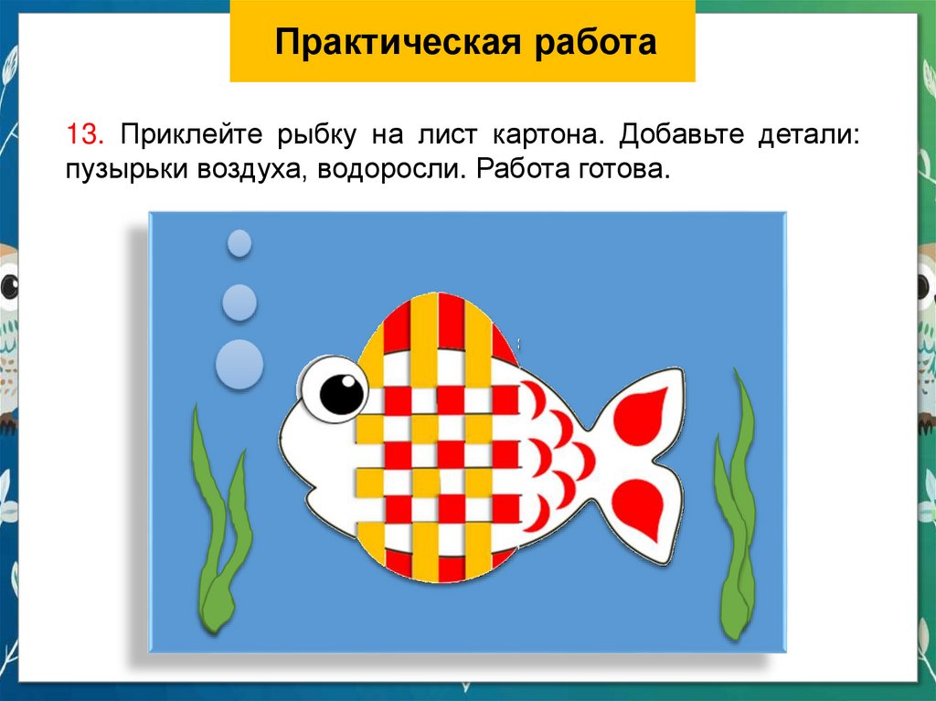 Практическая работа13. Приклейте рыбку на лист картона. Добавьте детали: