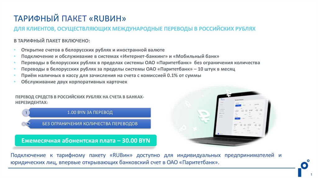 ТАРИФНЫЙ ПАКЕТ «RUBИН»ДЛЯ КЛИЕНТОВ, ОСУЩЕСТВЛЯЮЩИХ МЕЖДУНАРОДНЫЕ ПЕРЕВОДЫ В РОССИЙСКИХ РУБЛЯХ