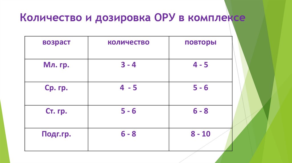 Количество и дозировка ОРУ в комплексевозраст