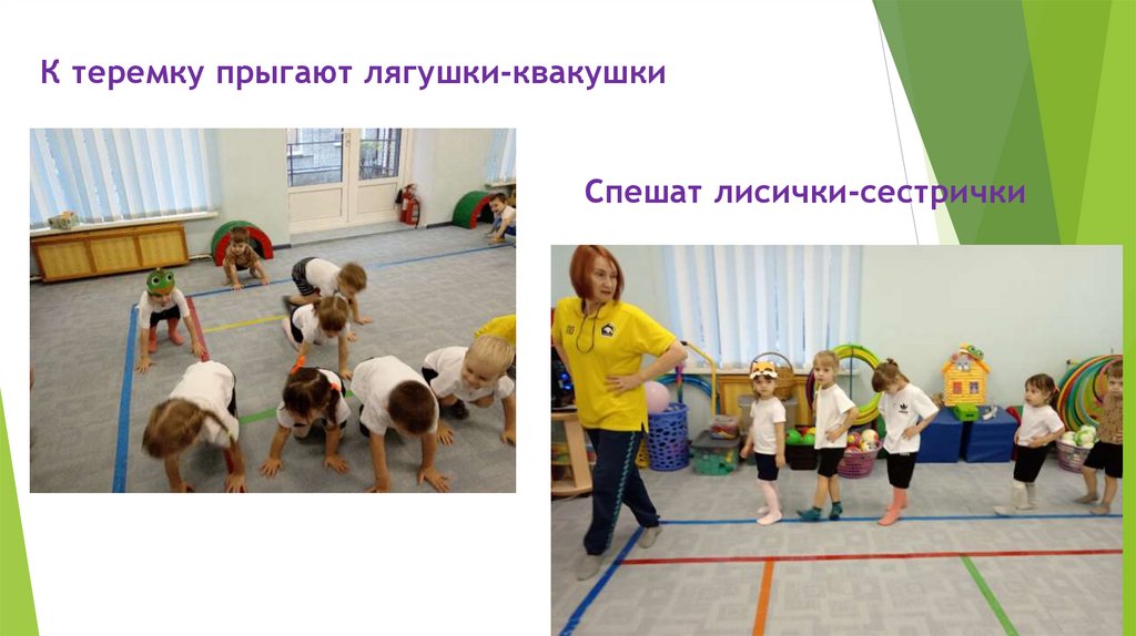 К теремку прыгают лягушки-квакушкиСпешат лисички-сестрички