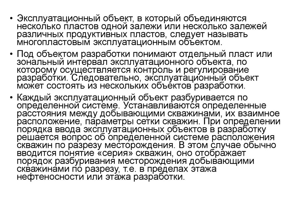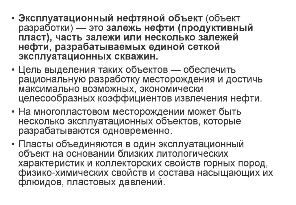 • Эксплуатационный нефтяной объект (объектразработки) — это залежь нефти (продуктивный