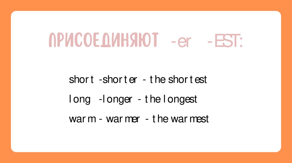 -er -EST:short -shorter - the shortest