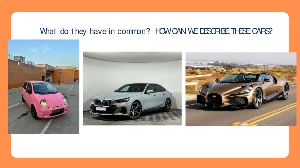 What do they have in common? HOW CAN WE DESCRIBE THESE CARS?.