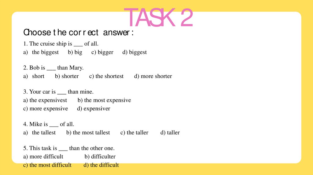 TASK 2Choose the correct answer: