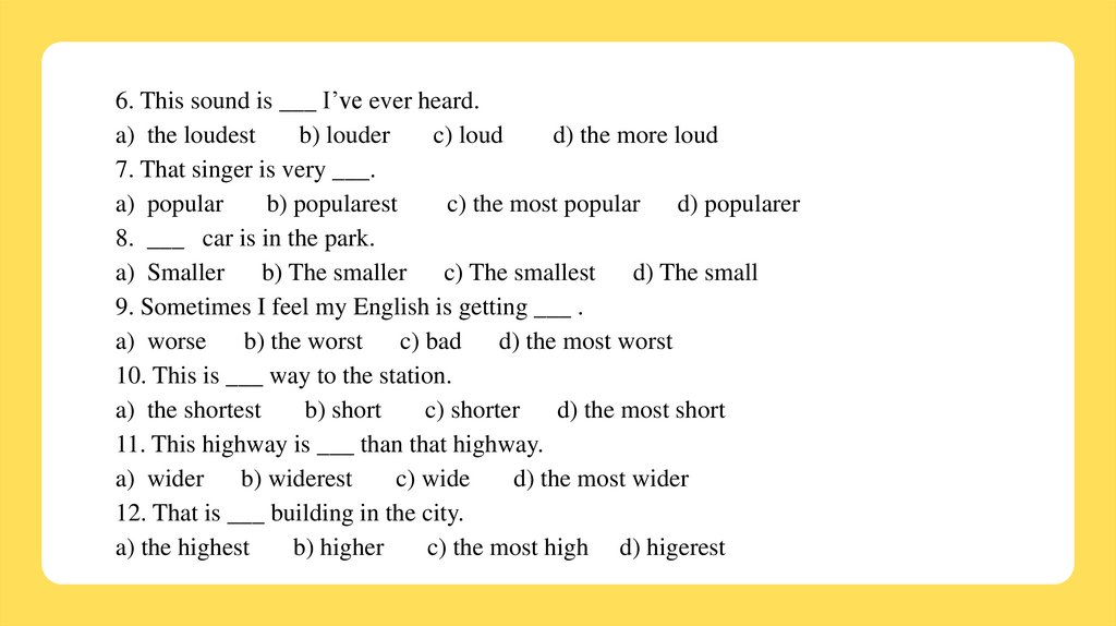6. This sound is ___ I’ve ever heard.a) the loudest