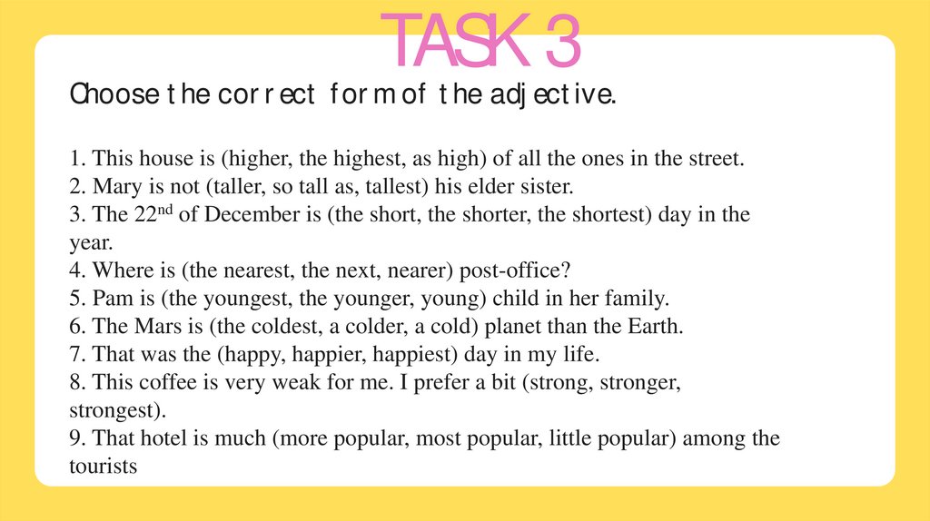 TASK 3Choose the correct form of the adjective.