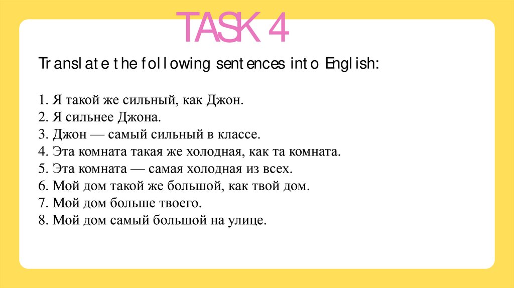 TASK 4Translate the following sentences into English: