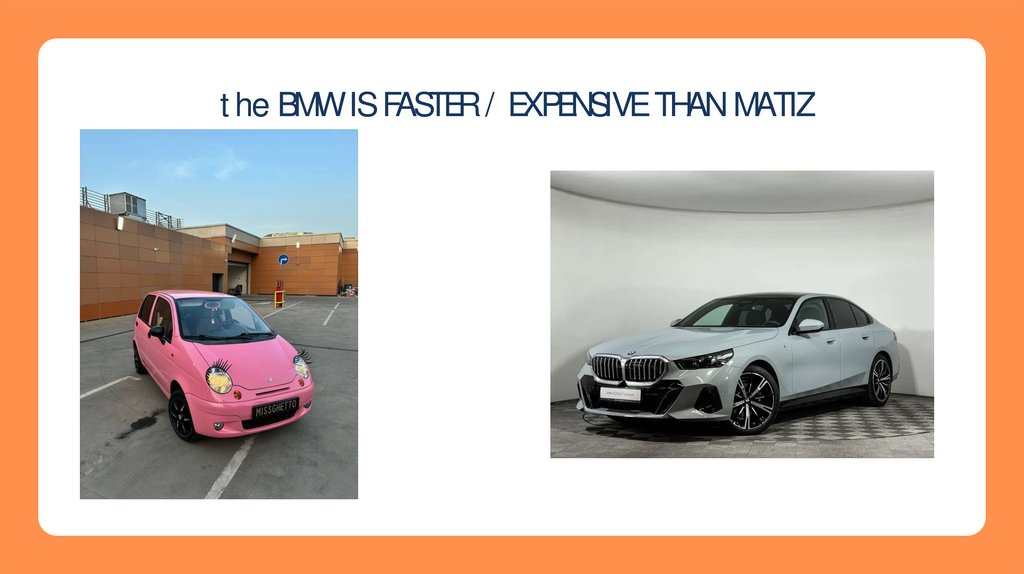 the BMW IS FASTER / EXPENSIVE THAN MATIZ.