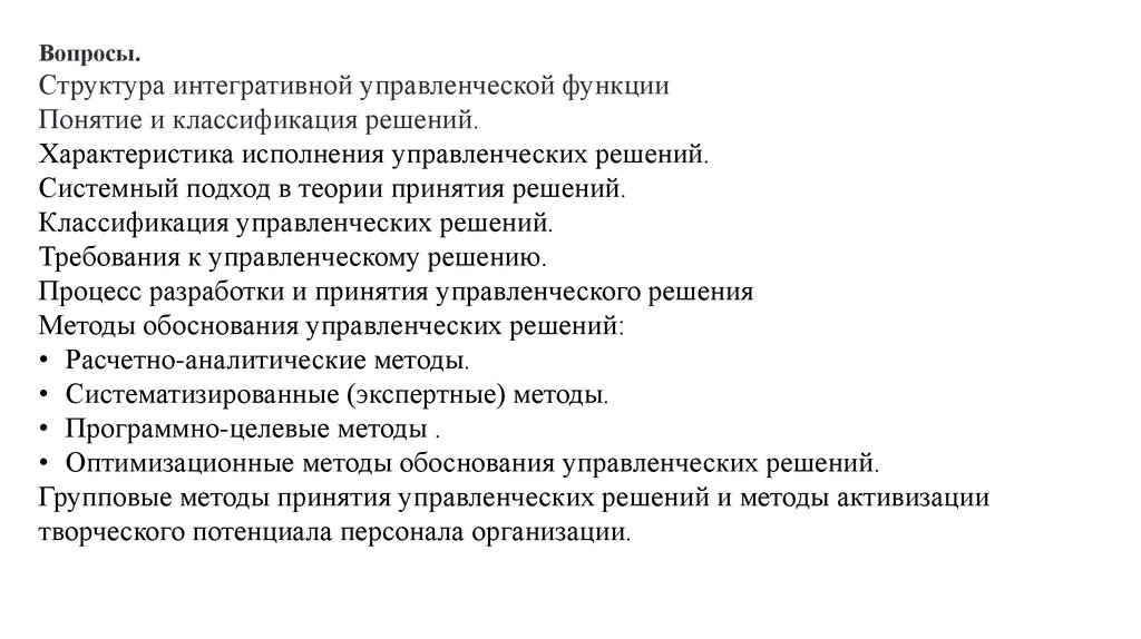 Вопросы.Структура интегративной управленческой функции
