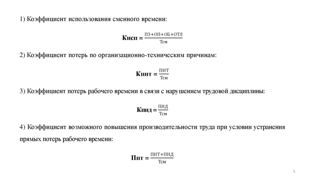 4) Коэффициент возможного повышения производительности труда при условии устранения