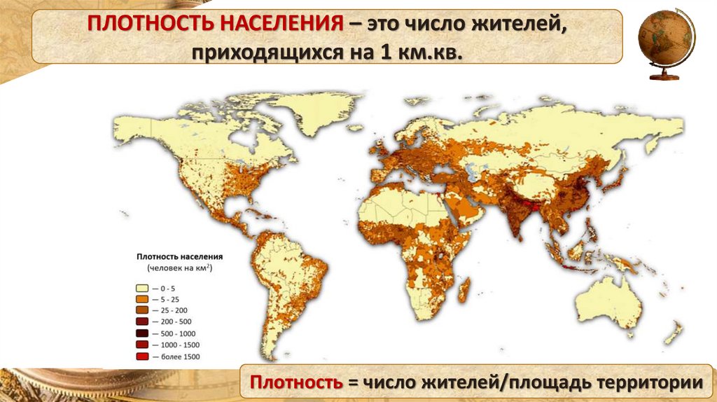 ПЛОТНОСТЬ НАСЕЛЕНИЯ – это число жителей,приходящихся на 1 км.кв.