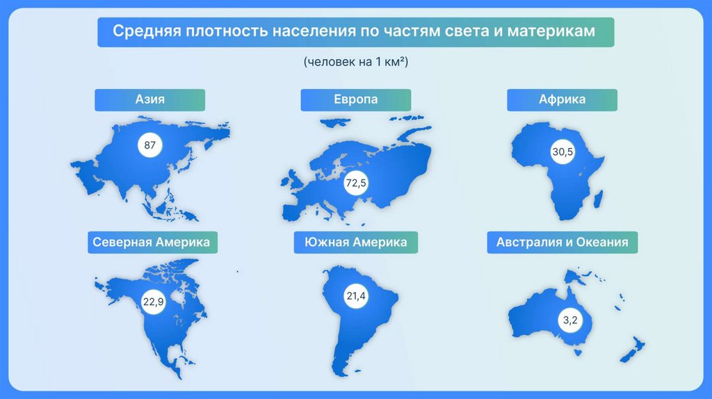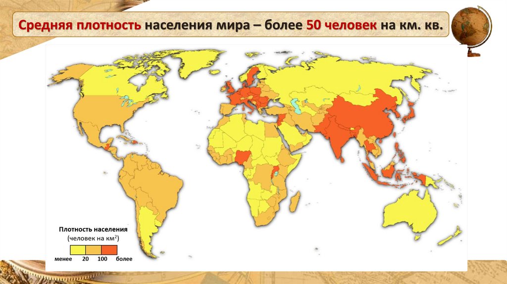 Средняя плотность населения мира – более 50 человек на км. кв.© Полшкова В.В., 2018