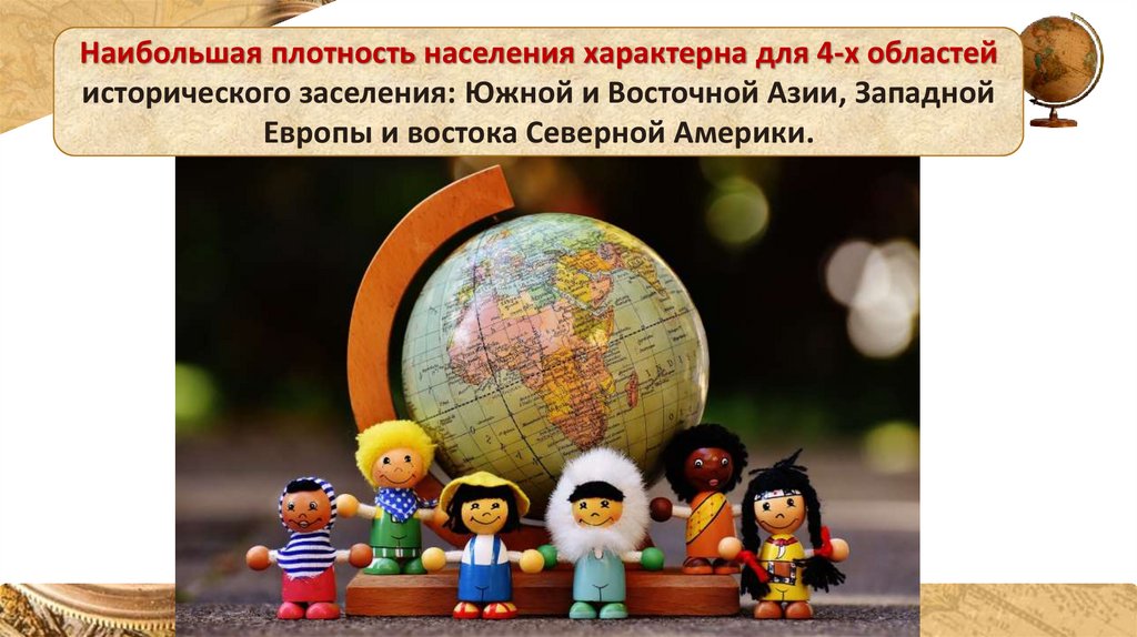 Наибольшая плотность населения характерна для 4-х областейисторического заселения: Южной и Восточной Азии, Западной