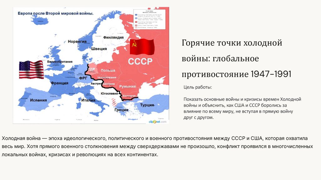 весь мир. Хотя прямого военного столкновения между сверхдержавами не произошло, конфликт проявился в многочисленных