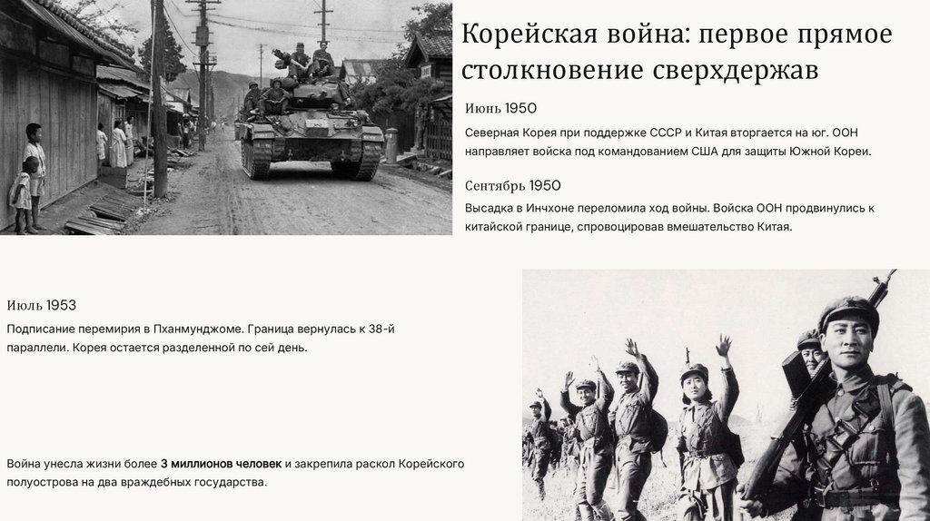 Война унесла жизни более 3 миллионов человек и закрепила раскол Корейского