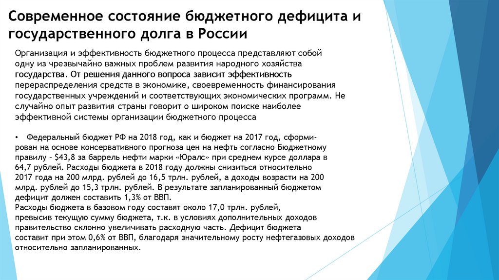 Современное состояние бюджетного дефицита игосударственного долга в России