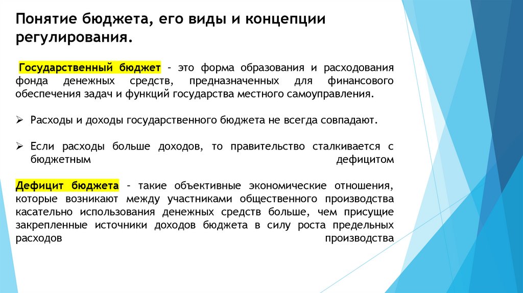 Понятие бюджета, его виды и концепции регулированияГосударственный бюджет