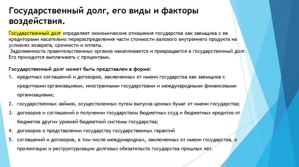 Государственный долг определяет экономические отношения государства как заемщика с ее