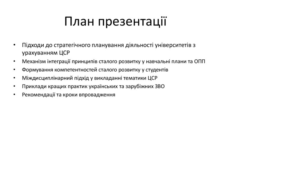 План презентації• Підходи до стратегічного планування діяльності університетів з