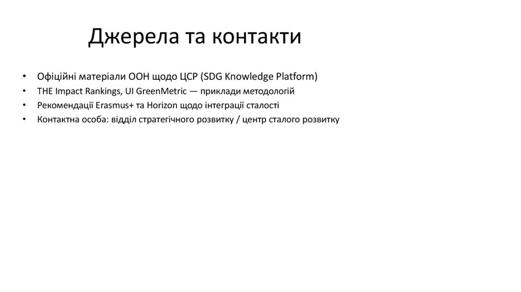 Джерела та контакти• Офіційні матеріали ООН щодо ЦСР (SDG Knowledge Platform)