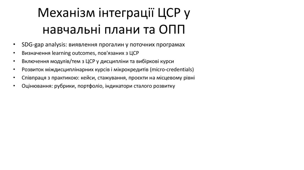 Механізм інтеграції ЦСР унавчальні плани та ОПП