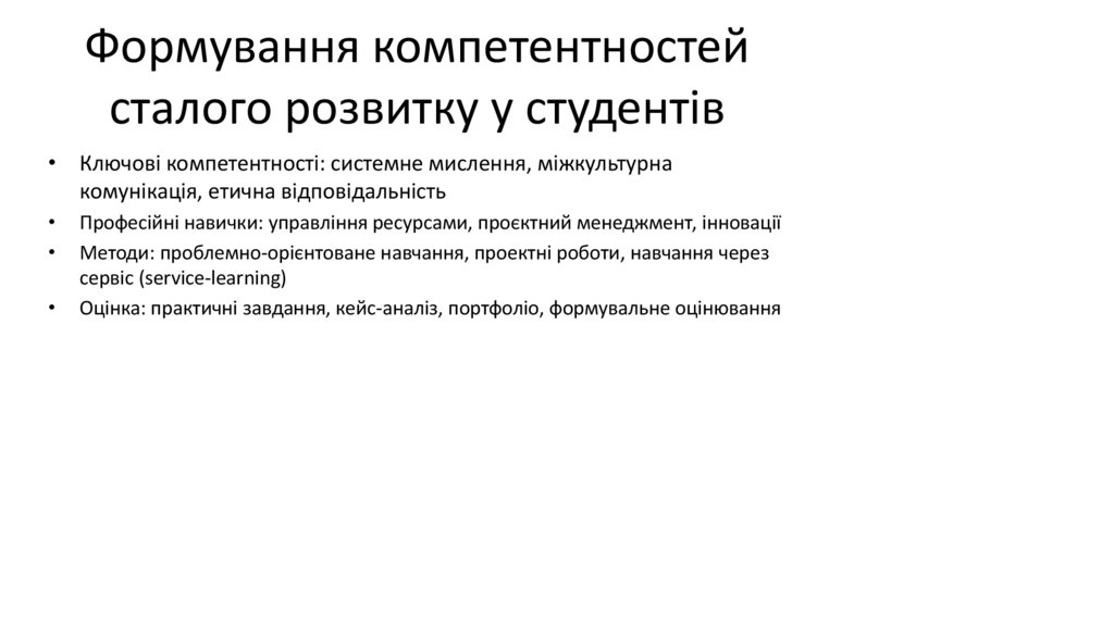 Механізм інтеграції принципів сталого розвитку у навчальні плани та ОПП