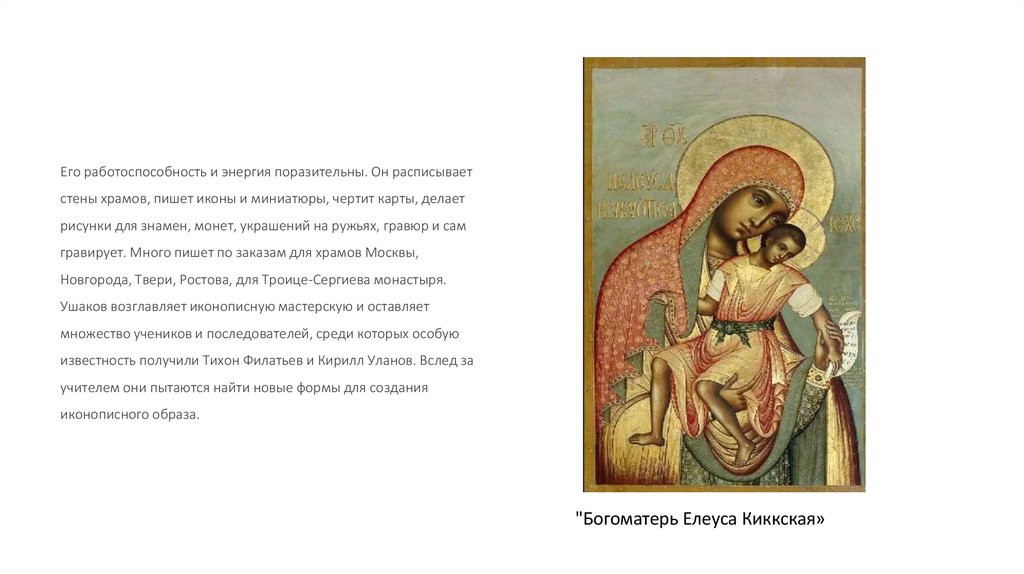 Ушаков возглавляет иконописную мастерскую и оставляет