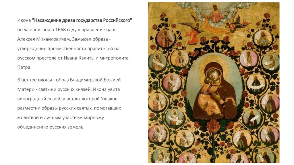 Икона "Насаждение древа государства Российского"была написана в 1668 году в правление царя