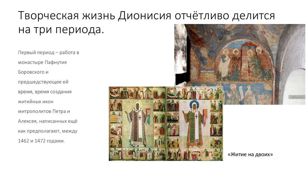 Творческая жизнь Дионисия отчётливо делитсяна три периода.