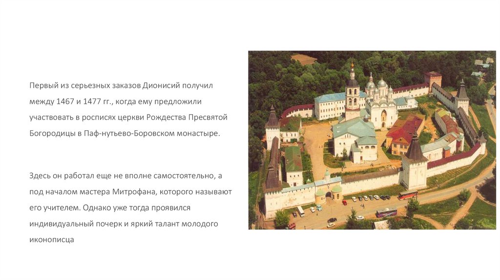 Первый из серьезных заказов Дионисий получилмежду 1467 и 1477 гг., когда ему предложили