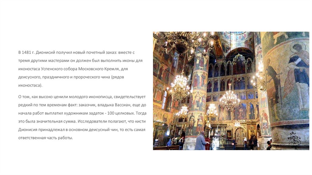 В 1481 г. Дионисий получил новый почетный заказ: вместе стремя другими мастерами он должен был выполнить иконы для