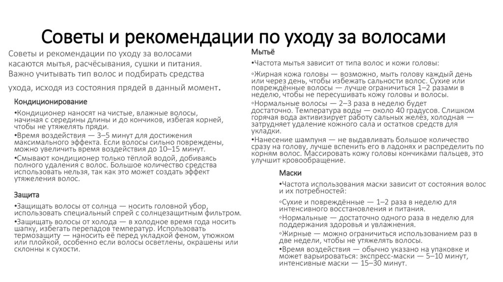 Советы и рекомендации по уходу за волосамиСоветы и рекомендации по уходу за волосами