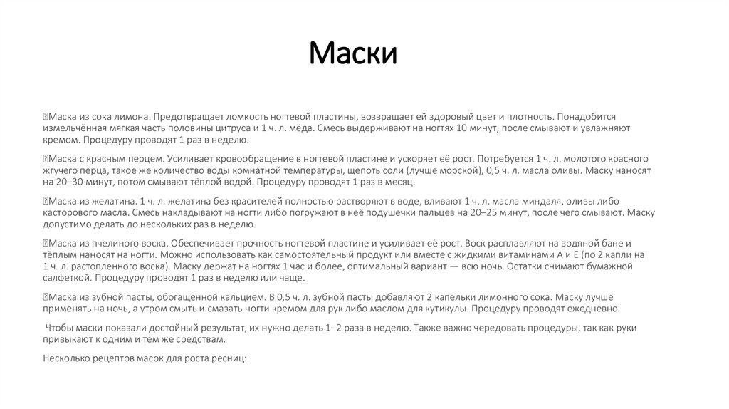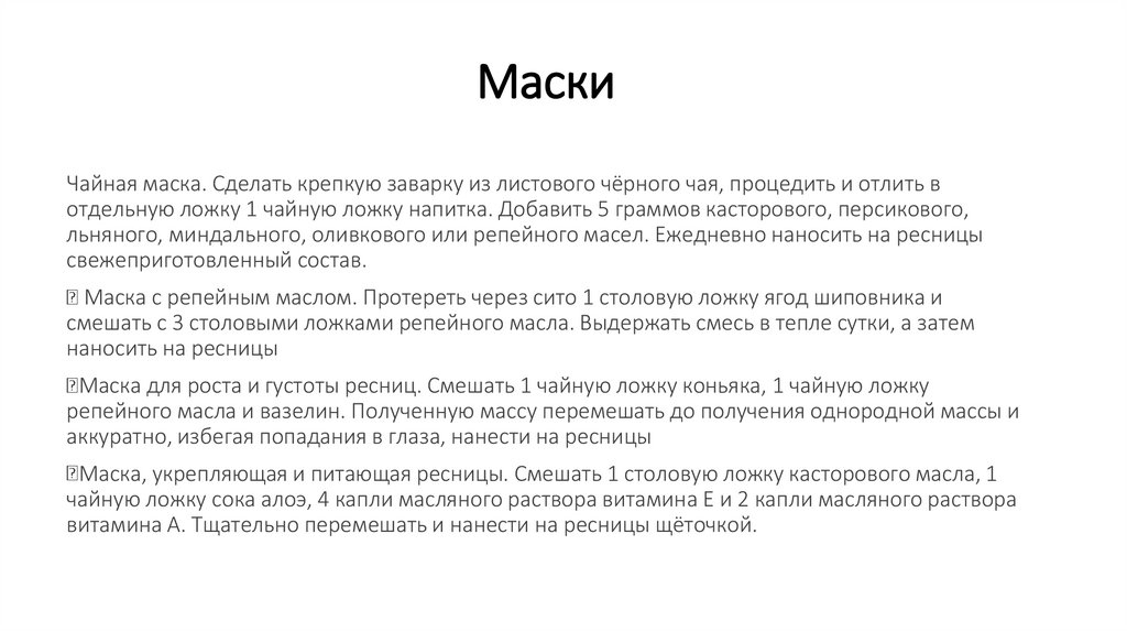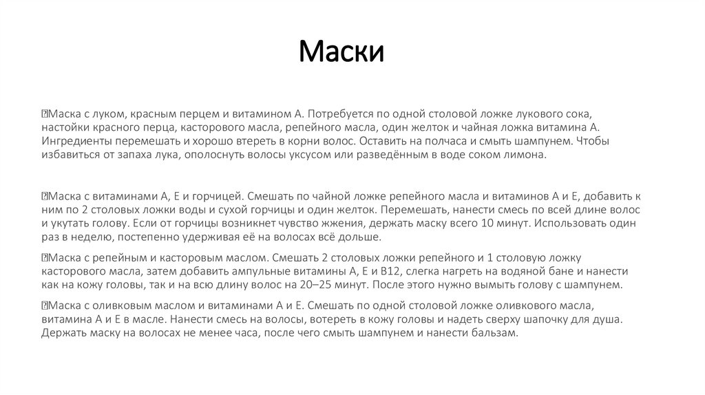 масло). Смыть тёплой водой спустя 20 минут.