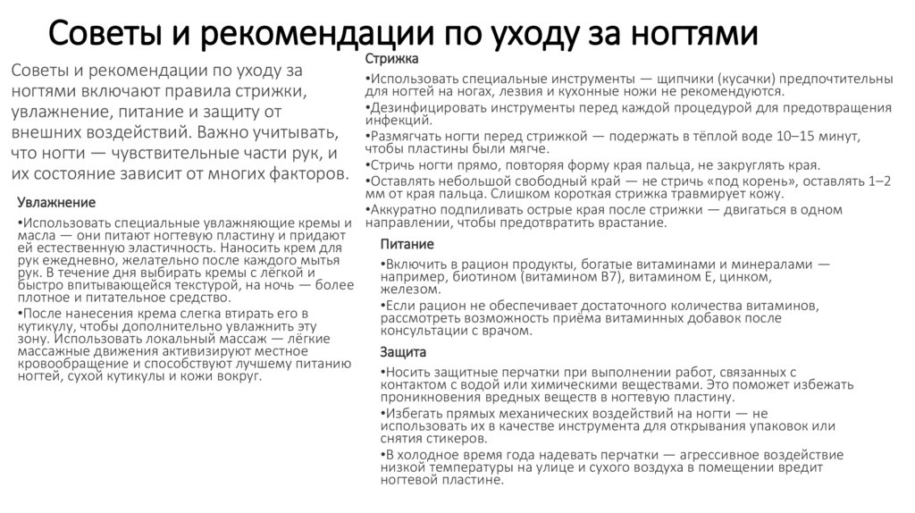 внешних воздействий. Важно учитывать, •Размягчать ногти перед стрижкой — подержать в тёплой воде 10–15 минут,