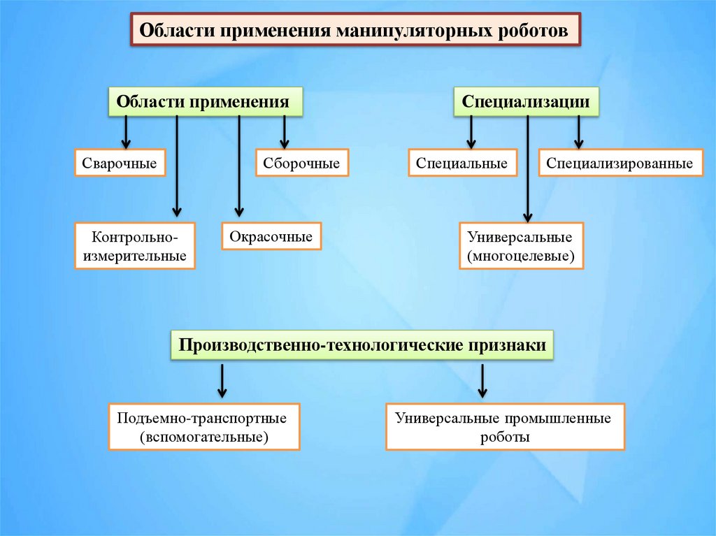 Области применения манипуляторных роботовОбласти применения