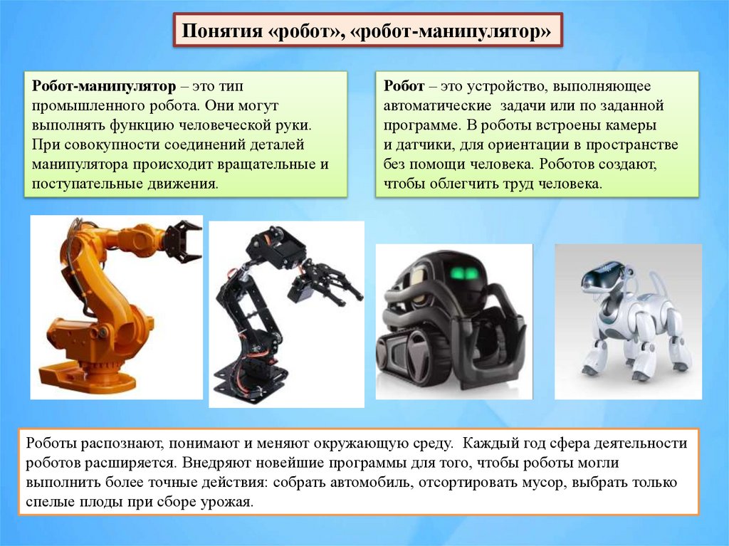 Понятия «робот», «робот-манипулятор»Робот-манипулятор – это тип