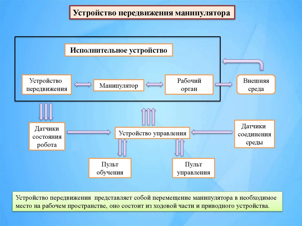 Устройство передвижения представляет собой перемещение манипулятора в необходимое