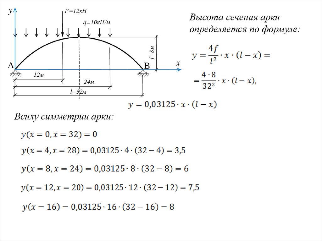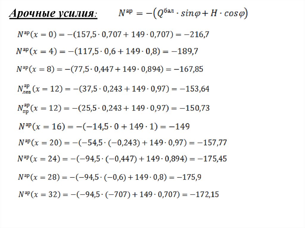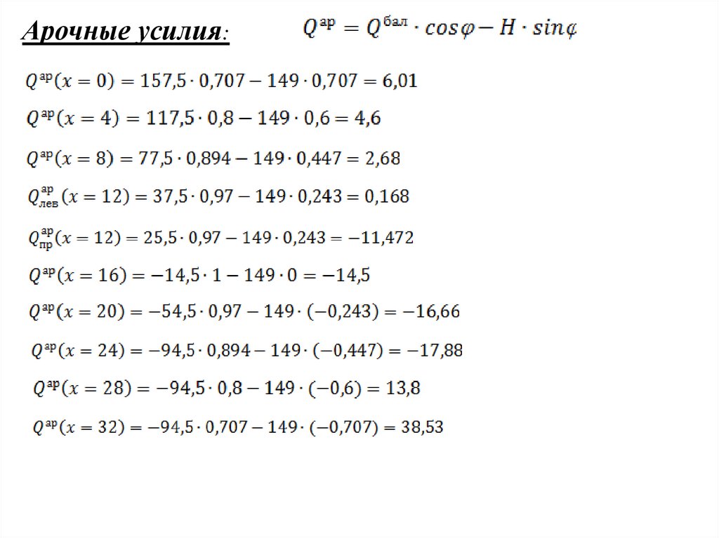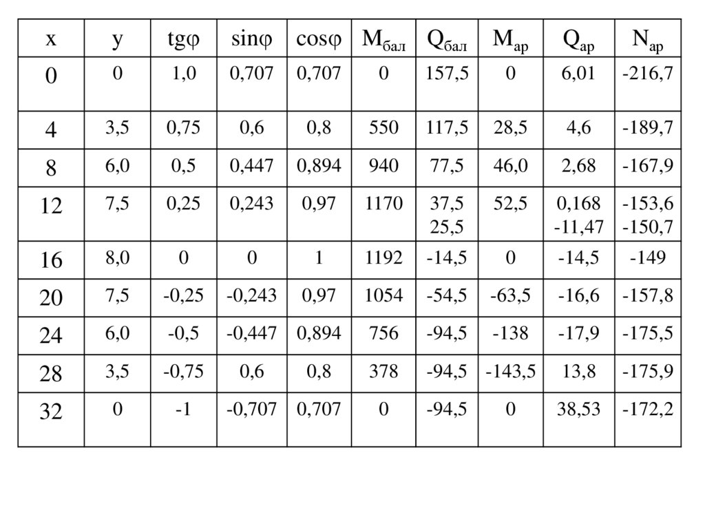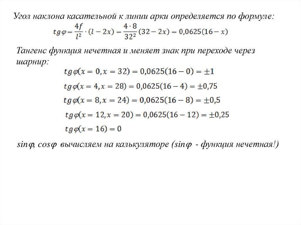 Угол наклона касательной к линии арки определяется по формуле:Тангенс функция нечетная и меняет знак при переходе через
