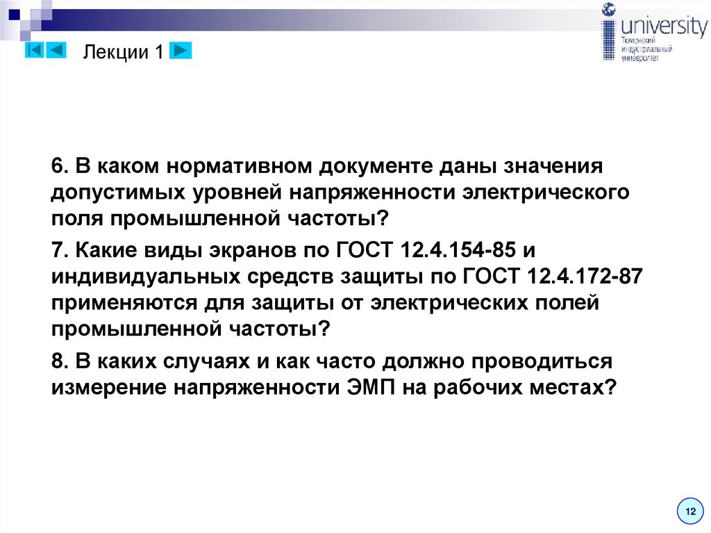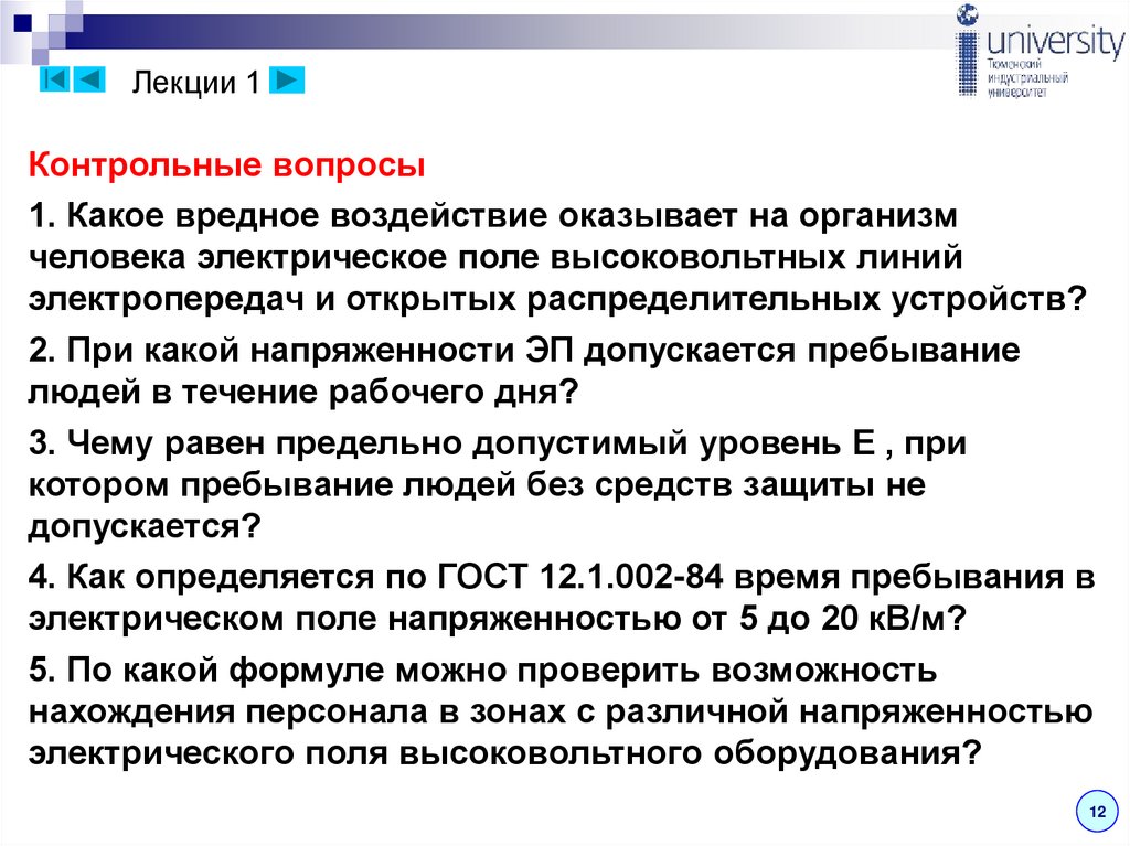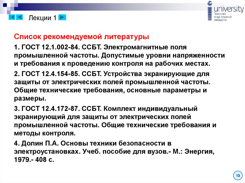 1. ГОСТ 12.1.002-84. ССБТ. Электромагнитные поля