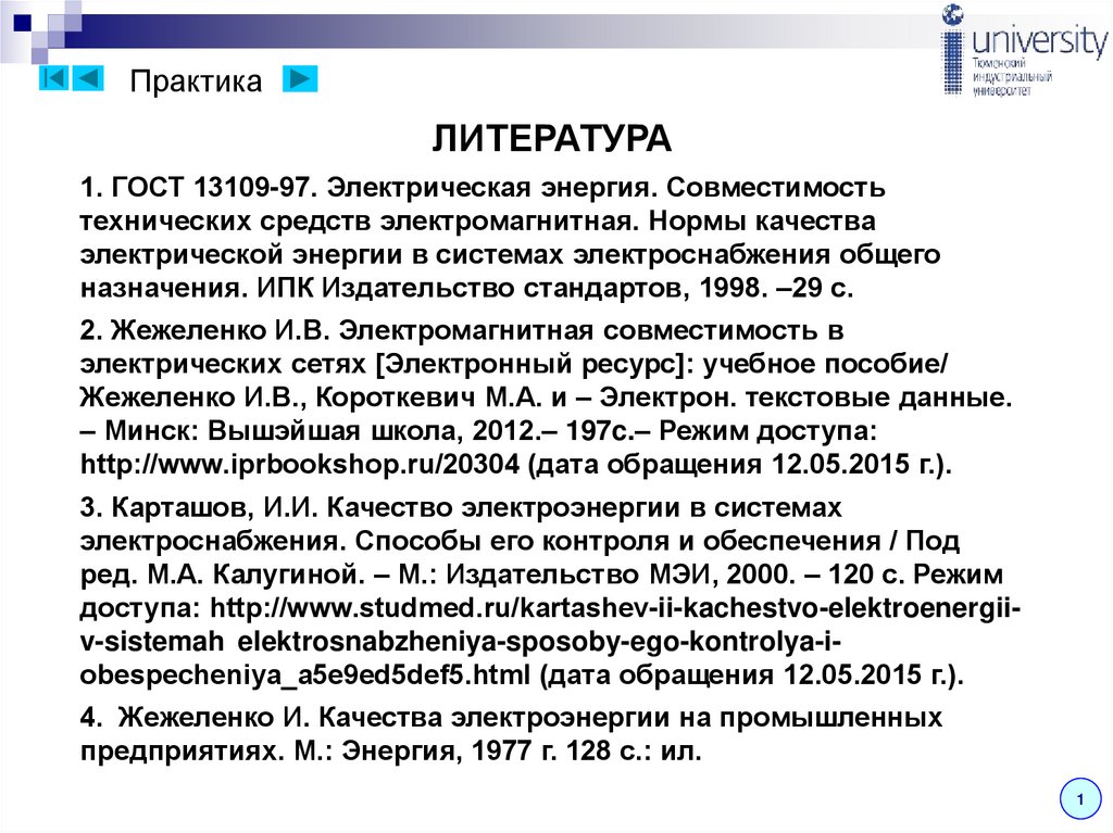 1. ГОСТ 13109-97. Электрическая энергия. Совместимость