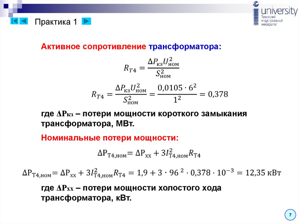 Практика 1Активное сопротивление трансформатора: