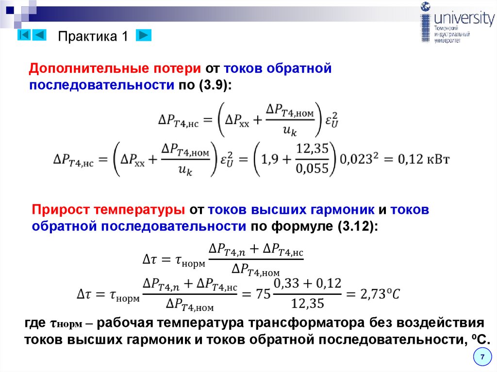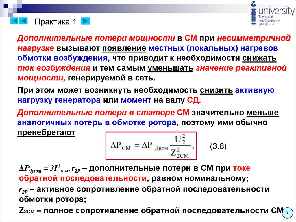 Практика 1Дополнительные потери от токов обратной последовательности