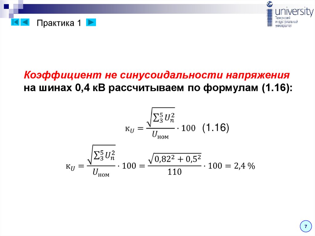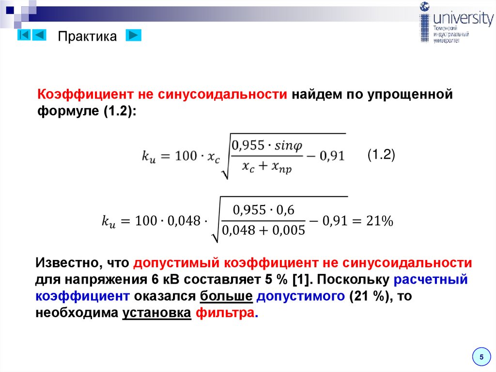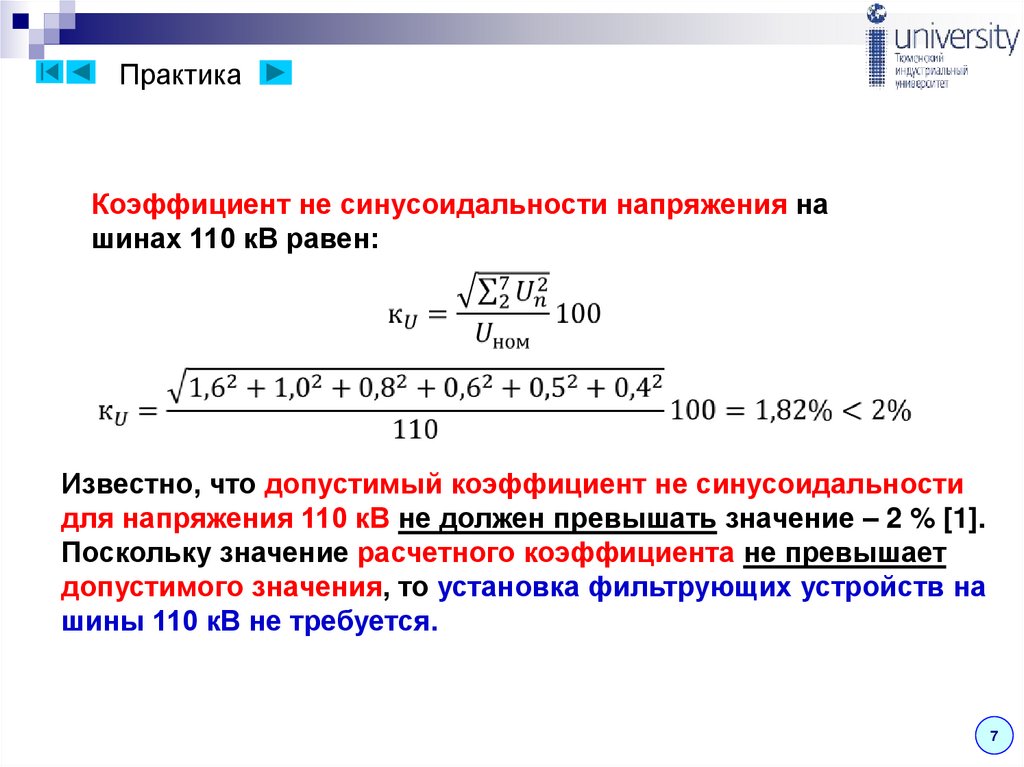гармоник и несимметрии напряжения равен [4]: