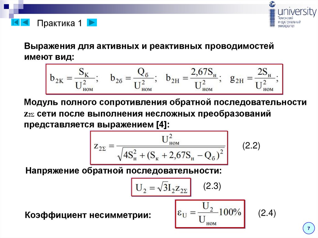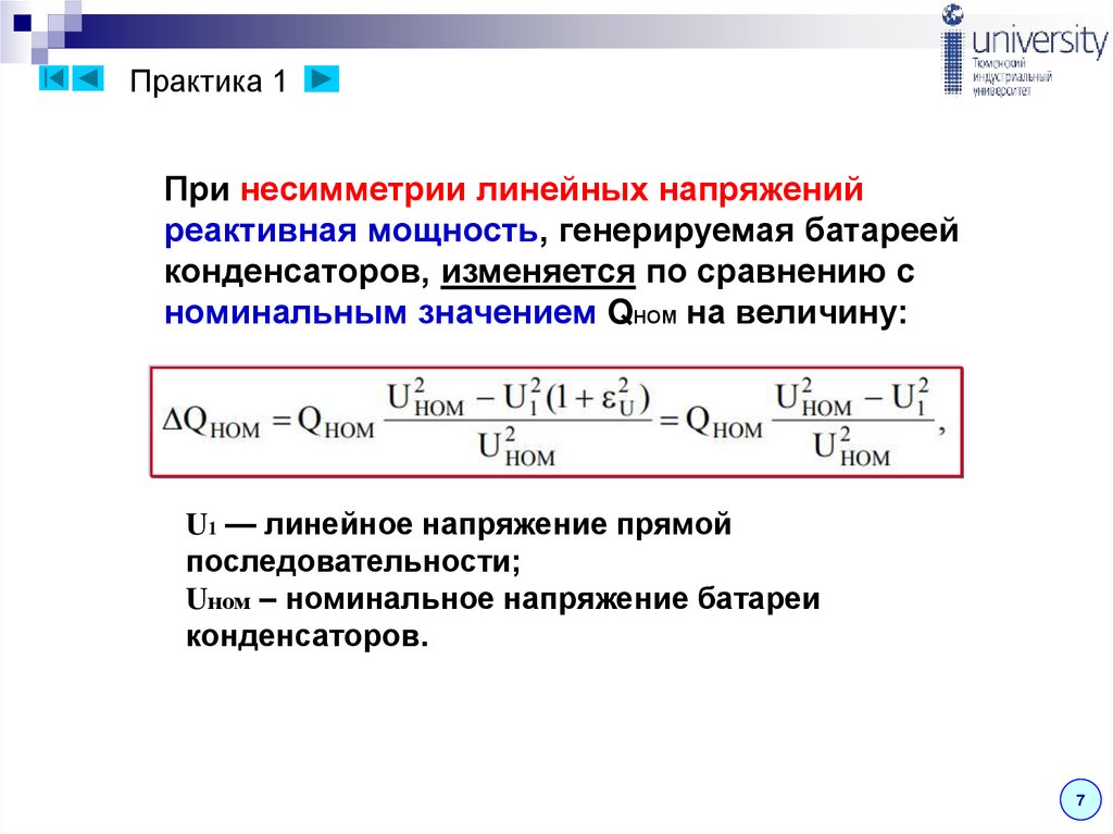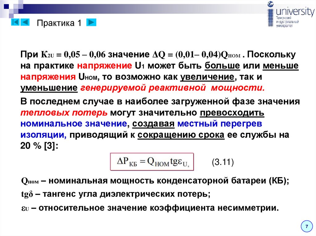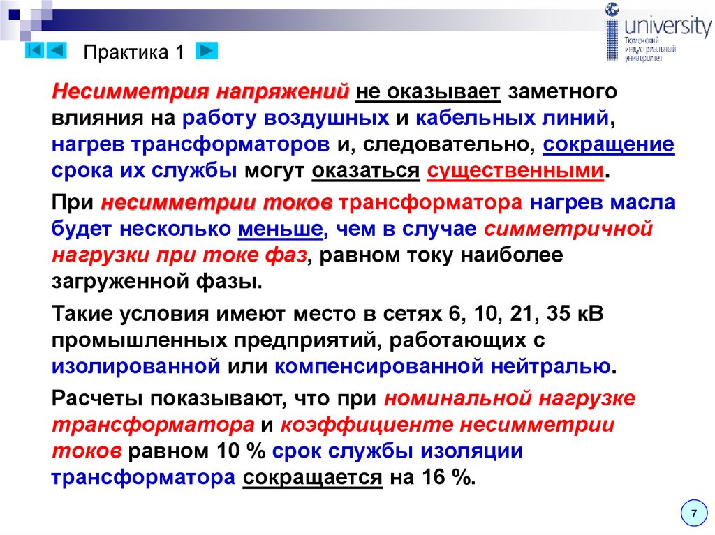 токов высших гармоник и несимметрии напряжения.