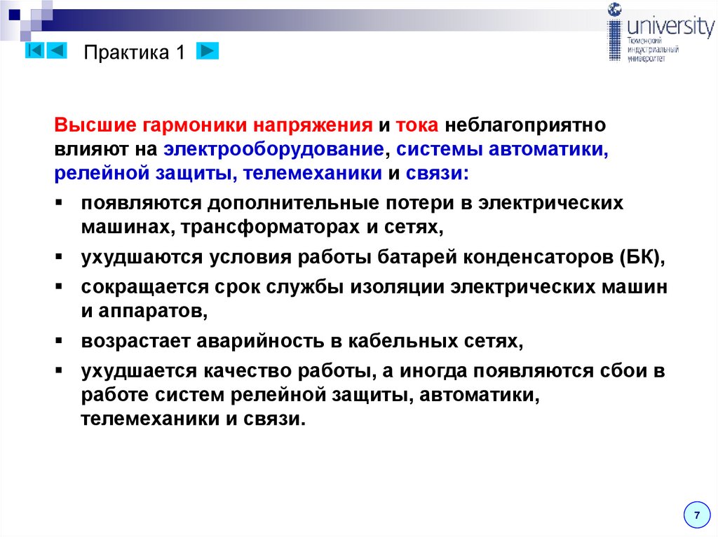 воздействием токов высших гармоник и токов