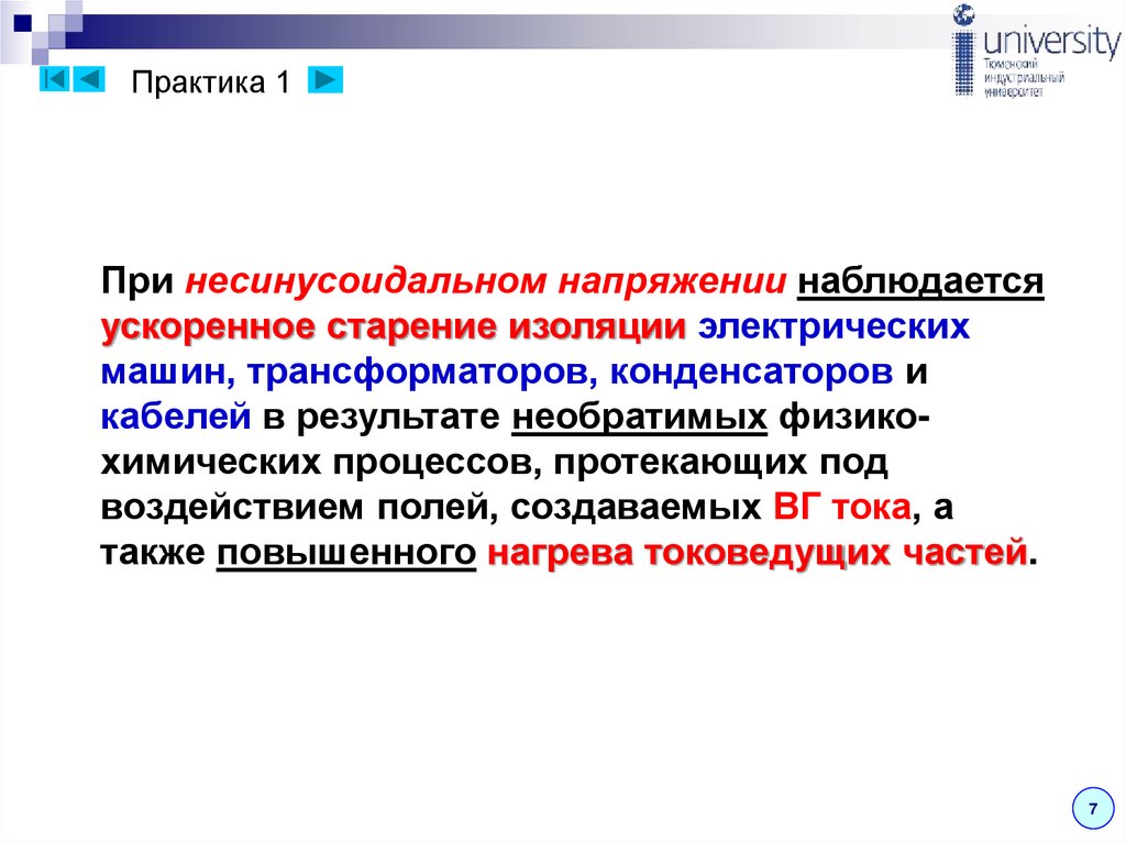под воздействием токов высших гармоник и токов