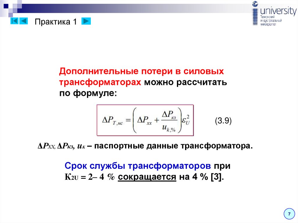 слайд), рассчитать дополнительные потери от