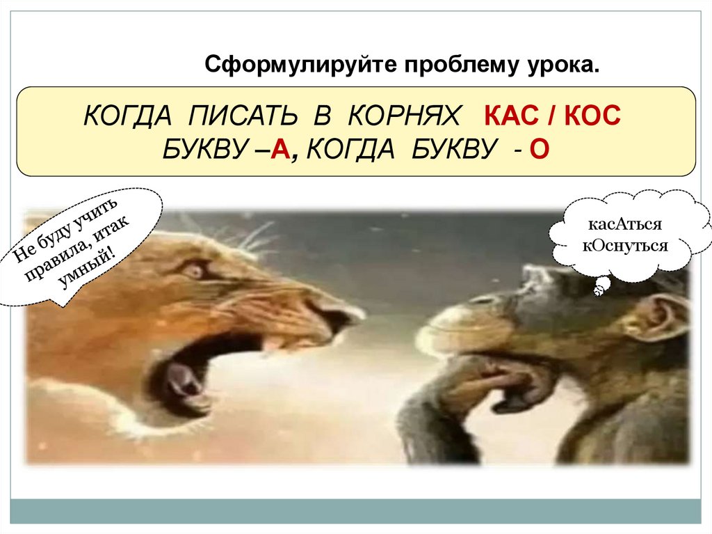 Сформулируйте проблему урока.КОГДА ПИСАТЬ В КОРНЯХ КАС / КОС